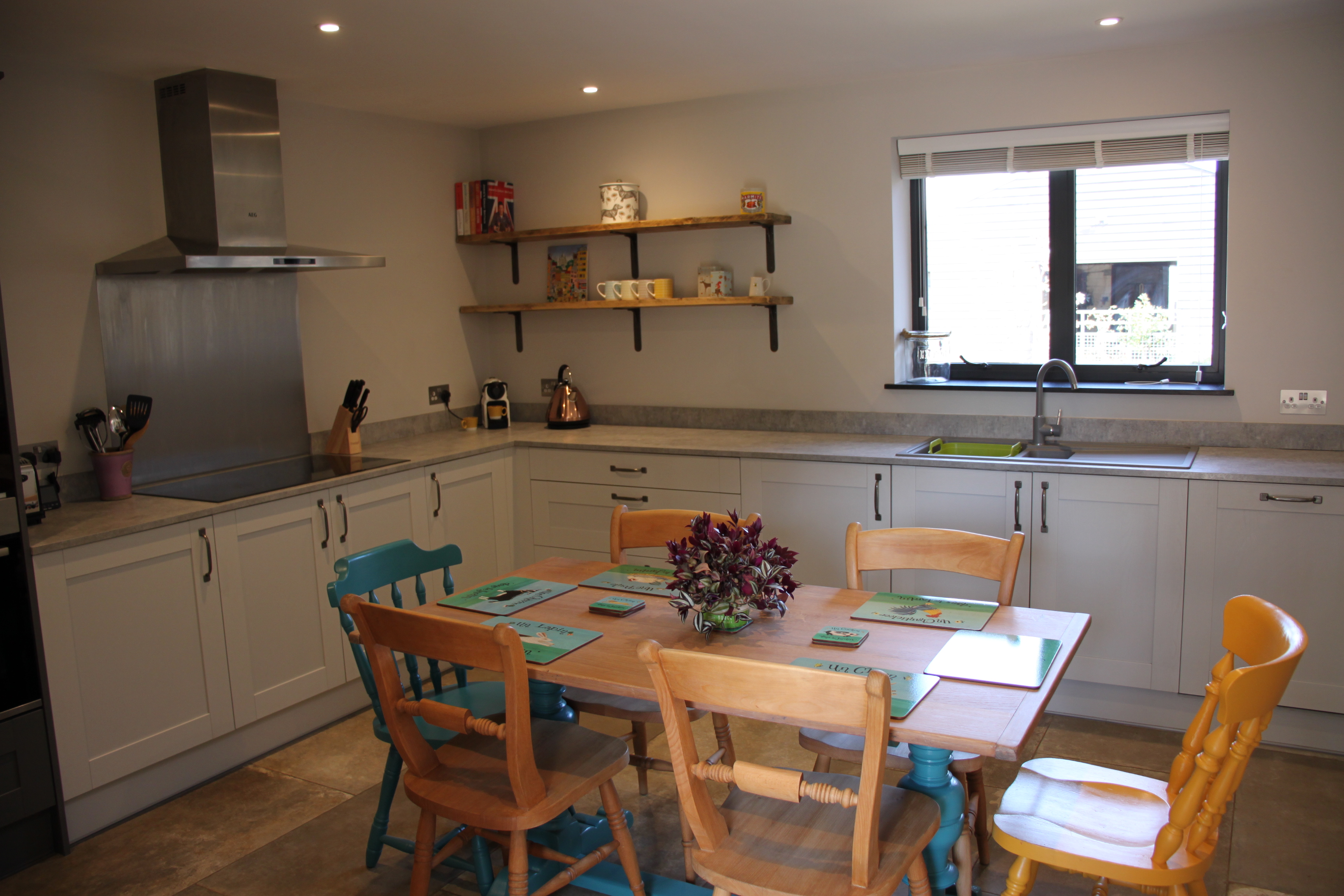 The two wonderfully comfortable Ercol sofas are accompanied by an equally comfy chairs all donned with an array of bright colours cushions. Relax in front of the TV, connected up to Netflix Youtube, BBC and more. Or take a book from the bookcase, light up the wood-burning stove, throw on some logs and let the flames enchant and warm you. Or spoil yourself and do both!