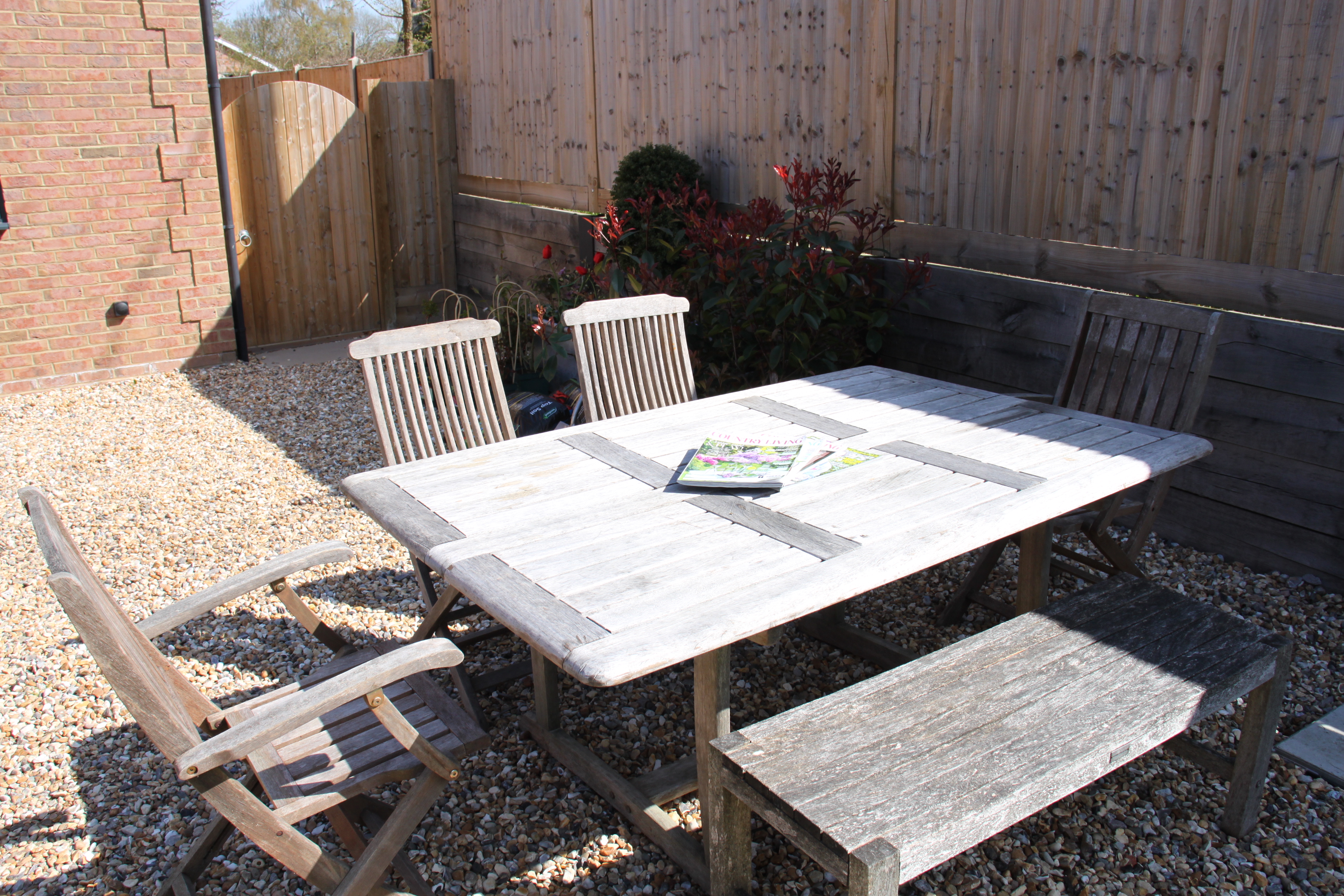 Head back down and out of the front door onto your drive and lovely open garden with ample outdoor seating around a large old table where you can breakfast, lunch or dine or fire up a BBQ for some flamed grilled delights.
